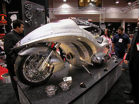 Motorcycle manufacturer Arlen Ness crafted this metal monster powered by a gas-turbine helicopter engine. The aluminum outer shell with noticeably large rivets gives it a sort of steam punk edge that you just won’t get from carbon fiber and plastic. The body has been shaped entirely by hand, which lends to why it’s not being mass produced.