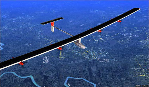 On 26 June 2009, the Solar Impulse was first presented to the public, in Dübendorf, Switzerland. The first testflight is planned for late summer 2009. A second version is planned by 2011. The fact that this is a two-seater makes circumnavigation possbible. At a top speed of 90 km/h, that should take between 20 and 25 days.